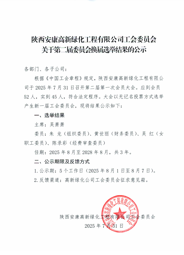 陜西安康高新綠化工程有限公司合作單位 2025年(7月-12月)供應商遴選抽取入圍結果公示