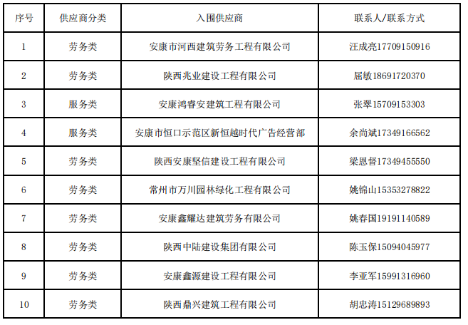 陜西安康高新綠化工程有限公司 2025年供應商下半年遴選入庫名單